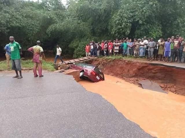 A road in Anambra state that links commuters to Awka, the state capital on Tuesday, divided into two after a heavy downpour. The Nibo-Umuawulu-Awgbu road is a major road that links commuters and communities within to Awka. Commuters find it difficult to get across and make their daily dealings due to the damage.
