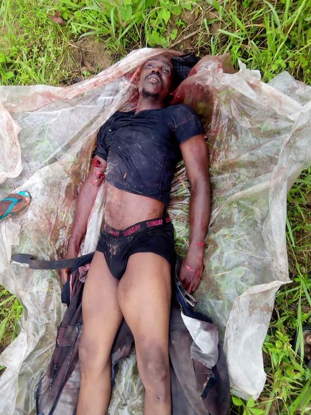 Three young men crossed the river Nun to meet their herbalist so as to extract the bullets lodged in their bodies. The Chairman in company of some of Special Squad and Police men attached to the State Volunteers, chased the boys to their hideout in Ikolo village where they were caught inside a room while others ran into the bush. Meanwhile, the dead young man whose body was hurriedly buried in a shallow grave across the river opposite the Federal Medical Centre was exhumed for proper autopsy.